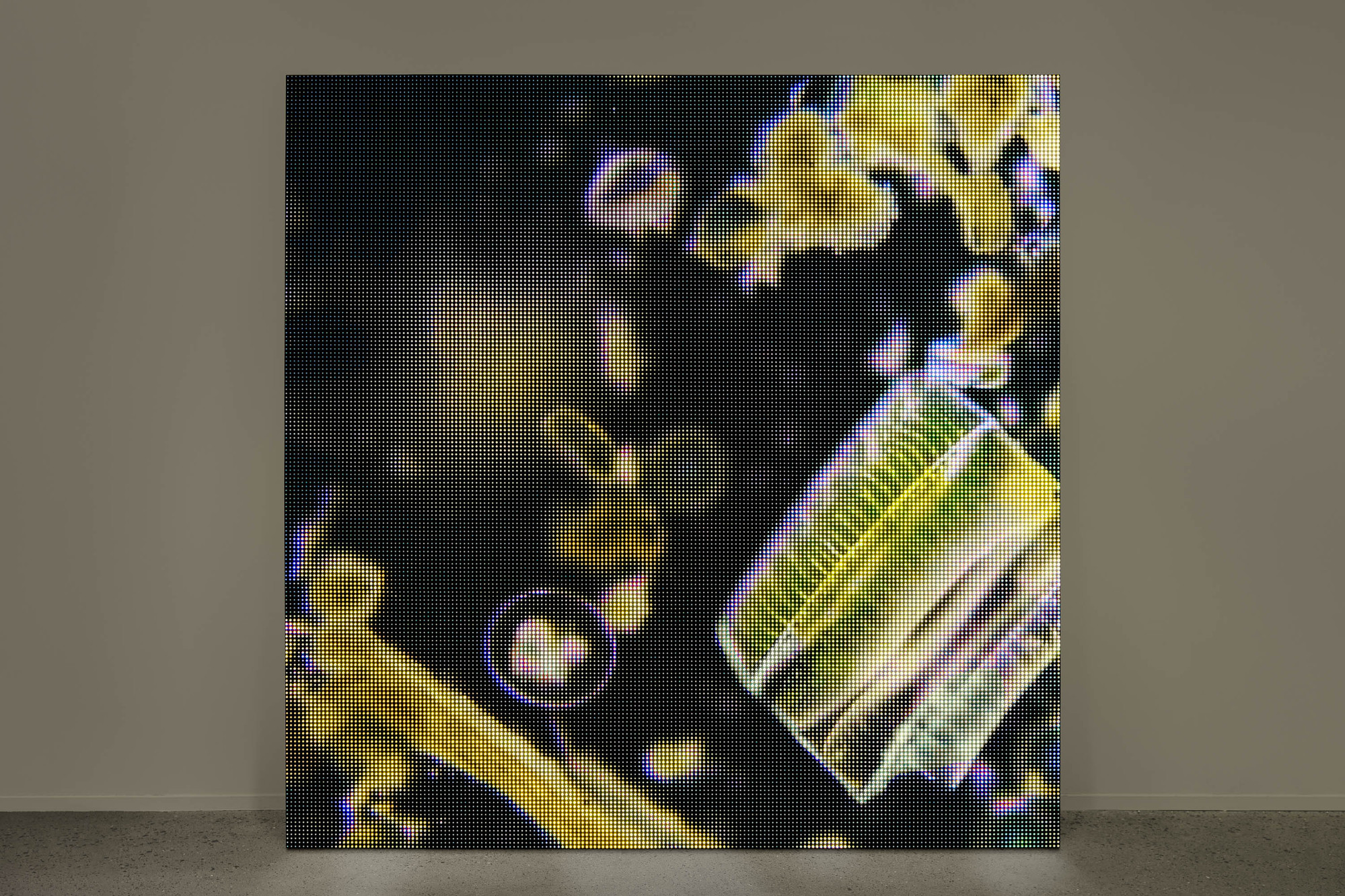 Pixel Pitch vol. 4 (2023) explores associative relations between the dark-colored, viscous oil—fueling capital flows—and the energy of the hundreds of millions of years of sun-powered, compressed life that comprise it. Pixel Pitch vol. 4 (2023) is currently displayed as part of the exhibition New Visions – Henie Onstad Triennial for Photography and New Media (Henie Onstad Kunstsenter, Oslo).