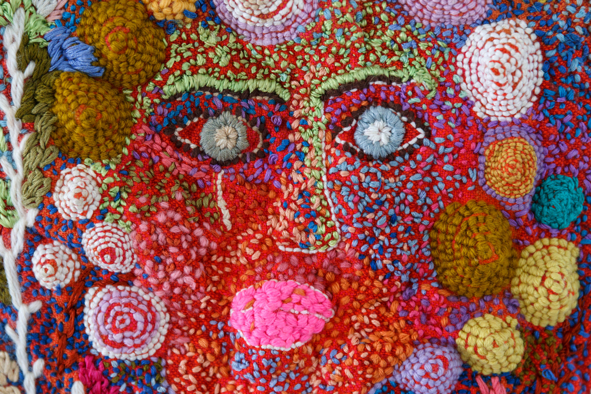 She works with textile that are assembled from found textiles and embroydery. Her working method is an intuitive method that springs from feelings and a quest to progress and develop personally.