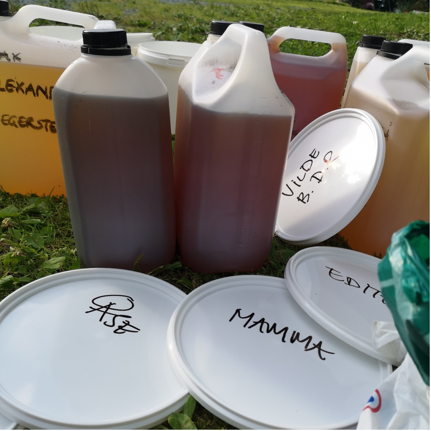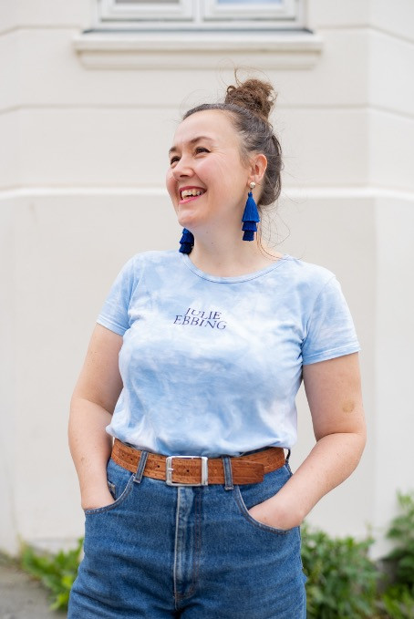 In the project “Potteblå” / Urine Indigo vat, urin is collected from female friends and feminist icons to generate the blue color used in dying the fabrics.