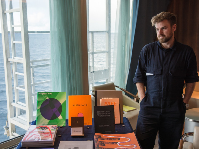 Coast Contemporary has, in collaboration with Bergen Art Book Fair, invited three Nordic publishers to host a small book fair in Hurtigruten’s own library space. The invited publishers are Mondo Books, Lodret Vandret, and Heavy Books. In addition, a selection of Norwegian artist’s books relevant to this year’s Bergen Art Book Fair is presented in anticipation of its upcoming edition on land at Bergen Kunsthall on November 1-4, 2018. During the cruise, artist Christian Tunge of Heavy Books works on an artist’s publication, which will in part be printed on board.