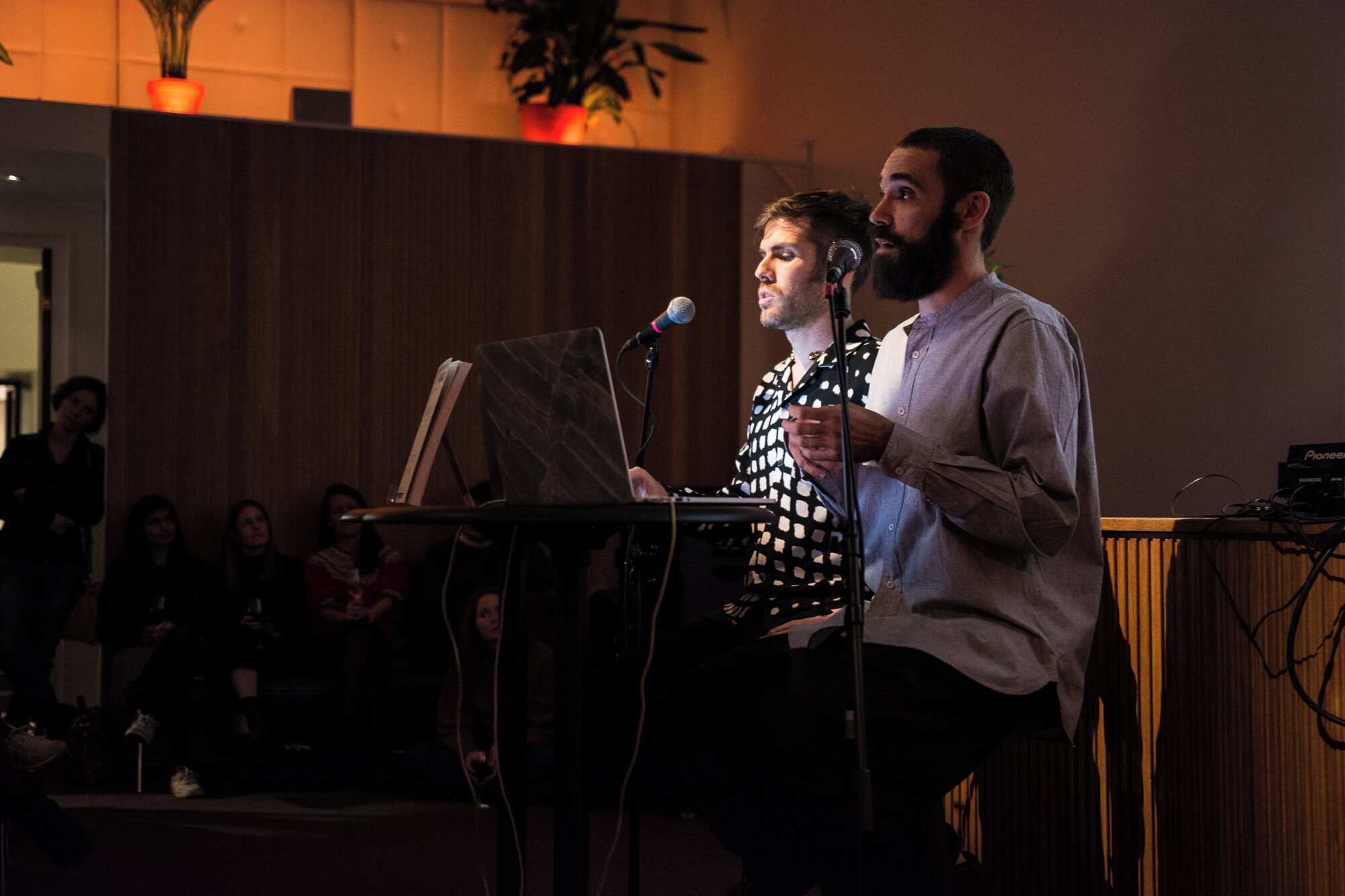 Human-induced climatic alterations of the oceans, the recent appearance of new parasites, and the disappearance of species could all be addressed through a different form of eating and sourcing of nutrients. This lecture-performance by London-based duo Cooking Sections (Daniel Fernández Pascual and Alon Schwabe) addresses the denuding of landscapes resulting from seawater pollution by intensive fish farming. It builds upon CLIMAVORE: On Tidal Zone, a research project started by the duo in 2015 that explores the environmental effects of aquaculture along the coast of the Isle of Skye in Scotland. Different from carnivore, omnivore, locavore, vegetarian, or vegan diets, Cooking Sections’ ongoing “climavore” project investigates other understandings of aquacultures that can rethink and reshape the ecological landscape of North Atlantic coasts.