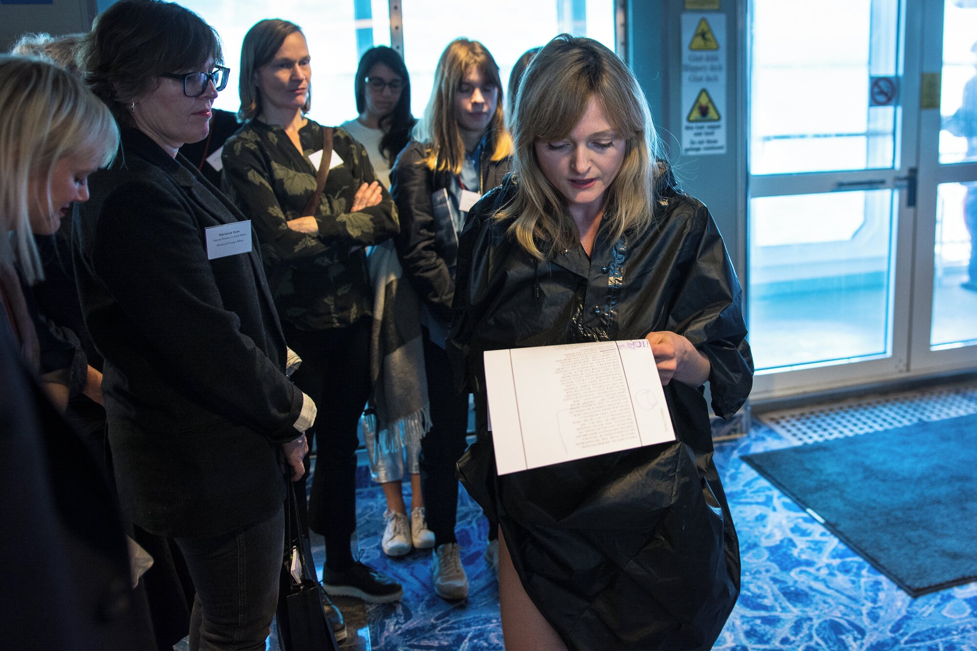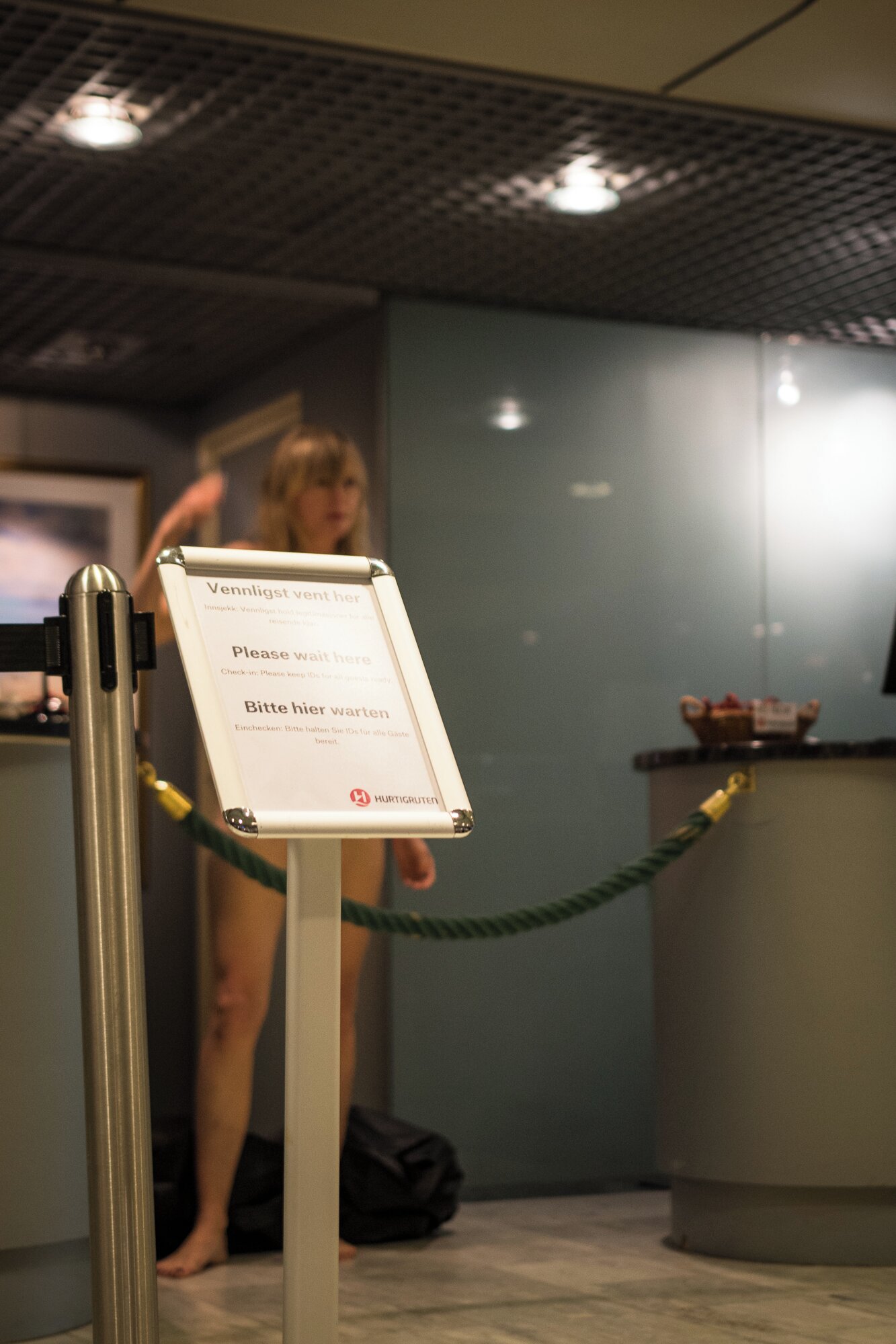 For Rugged, weathered, above the sea, Marthe Ramm Fortun creates a performance triptych that unfolds during the journey on the Hurtigruten. Involving site-specific paintings, daily ephemeral actions in different locations on the boat, and a pamphlet handed out to the public, Seeing is Turning seeks to challenge the gendered assumptions associated with the depiction of the Norwegian landscape. Channeling the ghosts of tapestry artist Frida Hansen and landscape painter Kitty Kielland, Fortun offers an alternative, more personal and unambiguously feminist account of the Norwegian wilderness.