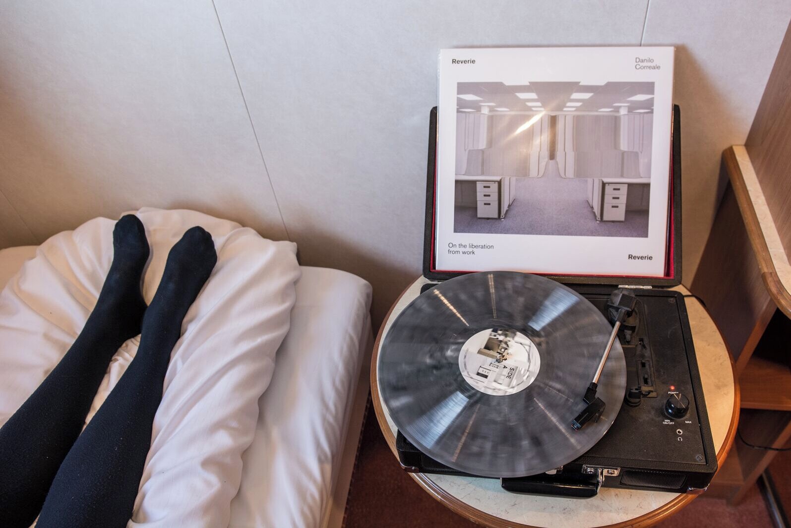 In Reverie: On the Liberation from Work, artist Danilo Correale has collaborated with a New York-based psychotherapist and hypnotherapist to create a guided hypnosis, exclusively for the Cabin Series, that aims to relax the body and mind in preparation for a post-work society. This hypnotic exercise guided the visitor on a peaceful journey of the mind to explore the realm where work is no longer needed, and where the dream of universal basic income has finally succeeded.