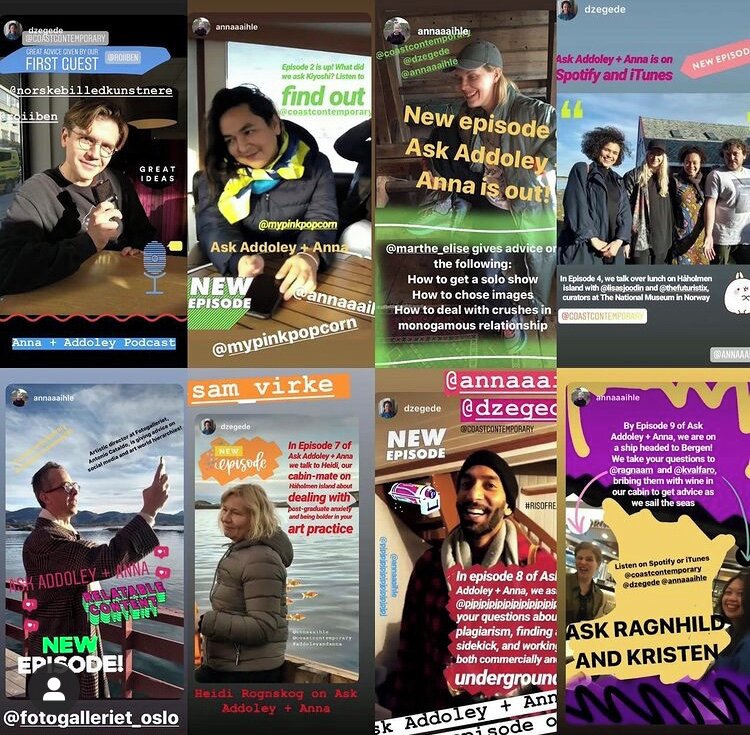 Ask Addoley + Anna is a collaboration between artists Addoley Dzegede and Anna Ihle in the form of a podcast. Ask Addoley + Anna offers advice on career, home economics and relationships. Their attendance later lead to two podcast collaborations; with the National Museum in Norway and with CAC Brètigny in France.
