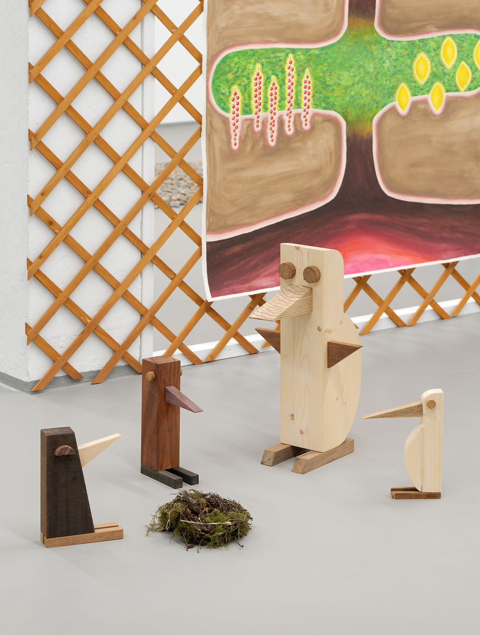 Her focus is on conveying complex, often socially critical stories through a visual language that is accessible, direct, and emotionally resonant—qualities inherent to animation and drawing. Classical pedagogical tools and techniques make it possible for her to ask, quite directly, about issues such as mental health as a broader societal crisis, as she most recently did through the exhibition Folly at O—Overgaden (Copenhagen, DK) in 2023 and at Nitja – Senter for Samtidskunst (Lillestrøm, NO) in 2024. The exhibition mimics a garden and translates questions about mental and environmental health into animation, drawing, installation, and sculpture. It includes the four-chapter stop-motion film: Pet Follies (2023). The film is composed of drawn and found material. It tells the story of a depressed penguin who watches gardening shows on the couch. The penguin attempts to work through the depression by turning to therapy, gardening, and composting, eventually trying to buy a piece of land with its friend, the turtle.