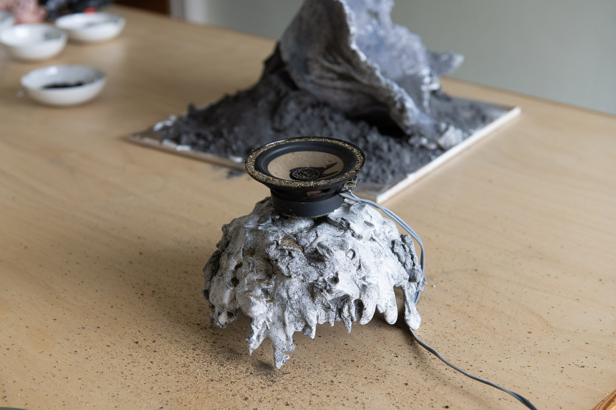 Austeen is currently involved in AVGANG/DEPONI at Velferden 2023-2026 with the project «To gather a mountain». Through a serie of field recordings, texts and performative interactions she reflects up on the local mining industry, its tailings and changes in the landscape due large scale resource extraction.